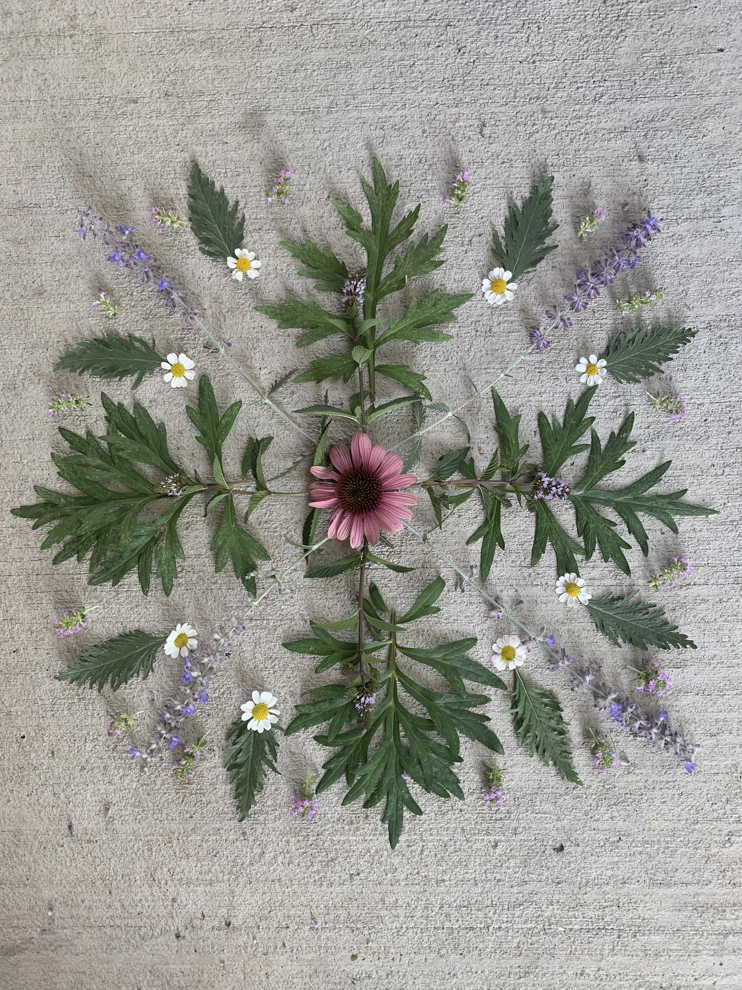 Creating a mandala is such a meditative and calming practice. Mandalas can be made with herbs, flowers, leaves, sticks, stones or other found objects.